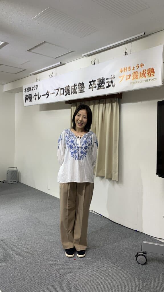 ところが年を経て、やはりどうしても声の仕事に再挑戦したい気持ちが高まったとき、木村きょうや塾の広告と運命の出会いをし、2025年に入塾。